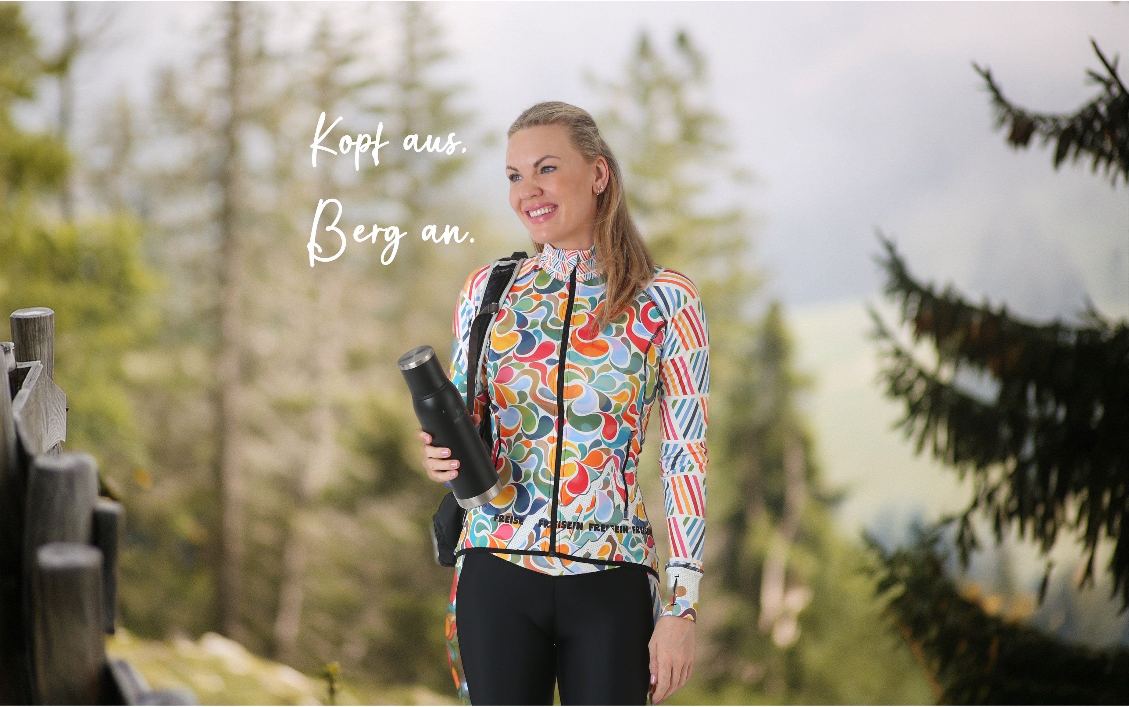 Bei uns passen Shirts und Hosen zusammen– aber oftmals erst auf den zweiten Blick. Keine langweiligen All-Over Drucke, sondern Kombinationen mit viel Witz und Verstand. Toll, dass die Pants und die Shirts auch einzeln getragen ein echter Hingucker sind– wer es nicht ganz so farbenfroh mag. Dazu passend auch immer einige tolle Accessoires wie beidseitig bedruckte Stirnbänder oder hochwertige Multifunktionstücher, die wir in Deutschland fertigen lassen.