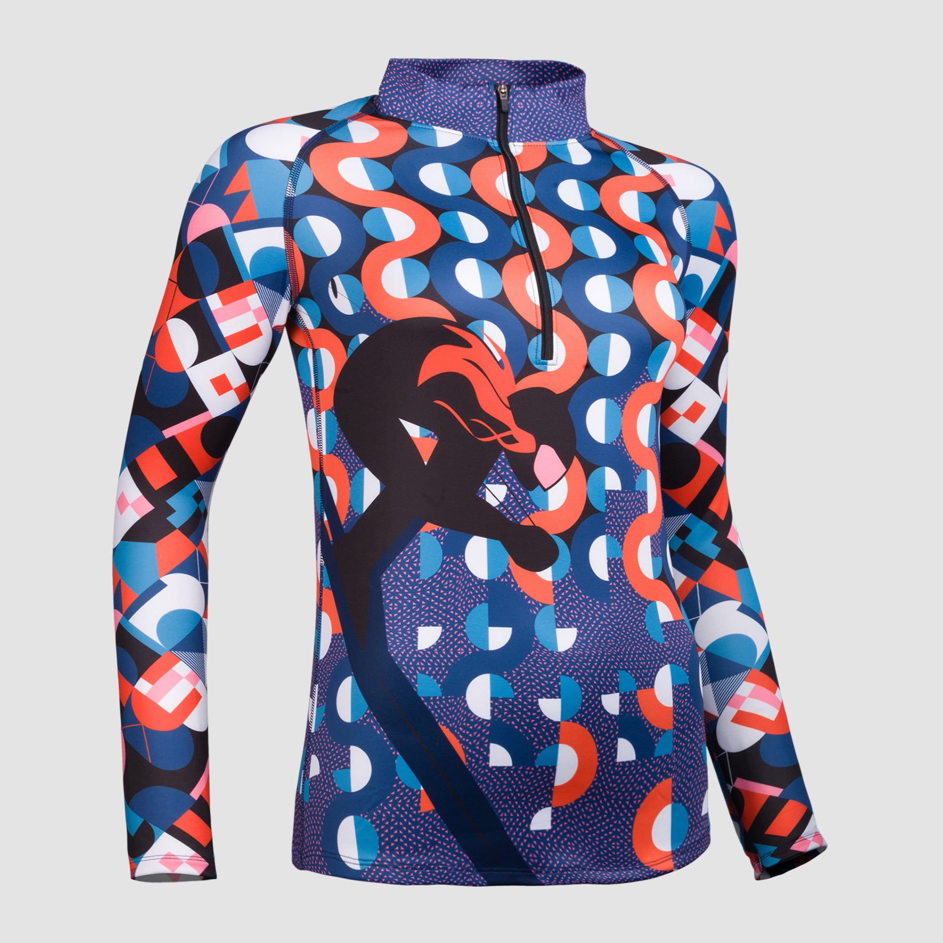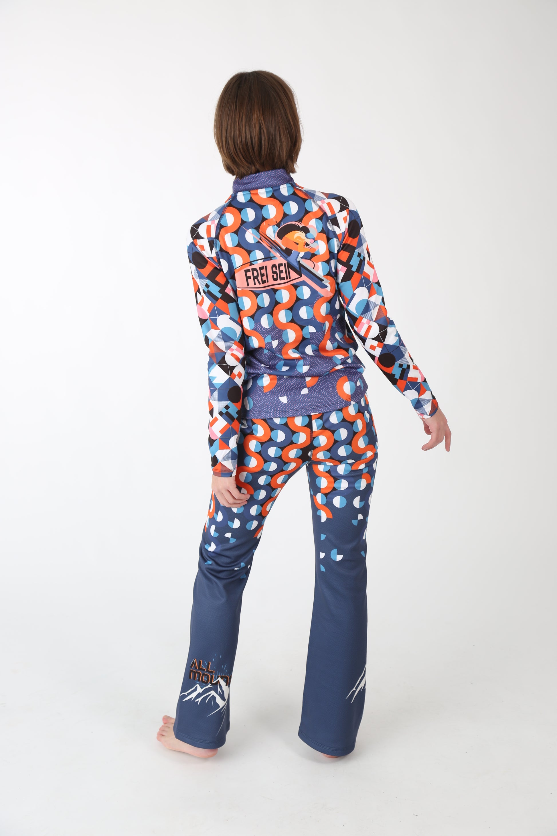 Das FreiSein Skishirt bringt authentischen Retro-Charme auf die Skipiste – mit einem grafischen Allover-Druck, der von klassischen Mustern der 70er und 80er inspiriert ist. Im Fokus: Eine ausdrucksstark gestaltete Skiabfahrerin auf der Vorderseite – tief in der Hocke, kraftvoll und fokussiert. Als stilisiertes Icon eingefasst, symbolisiert sie Geschwindigkeit, Kontrolle und die pure Freude am Skifahren.