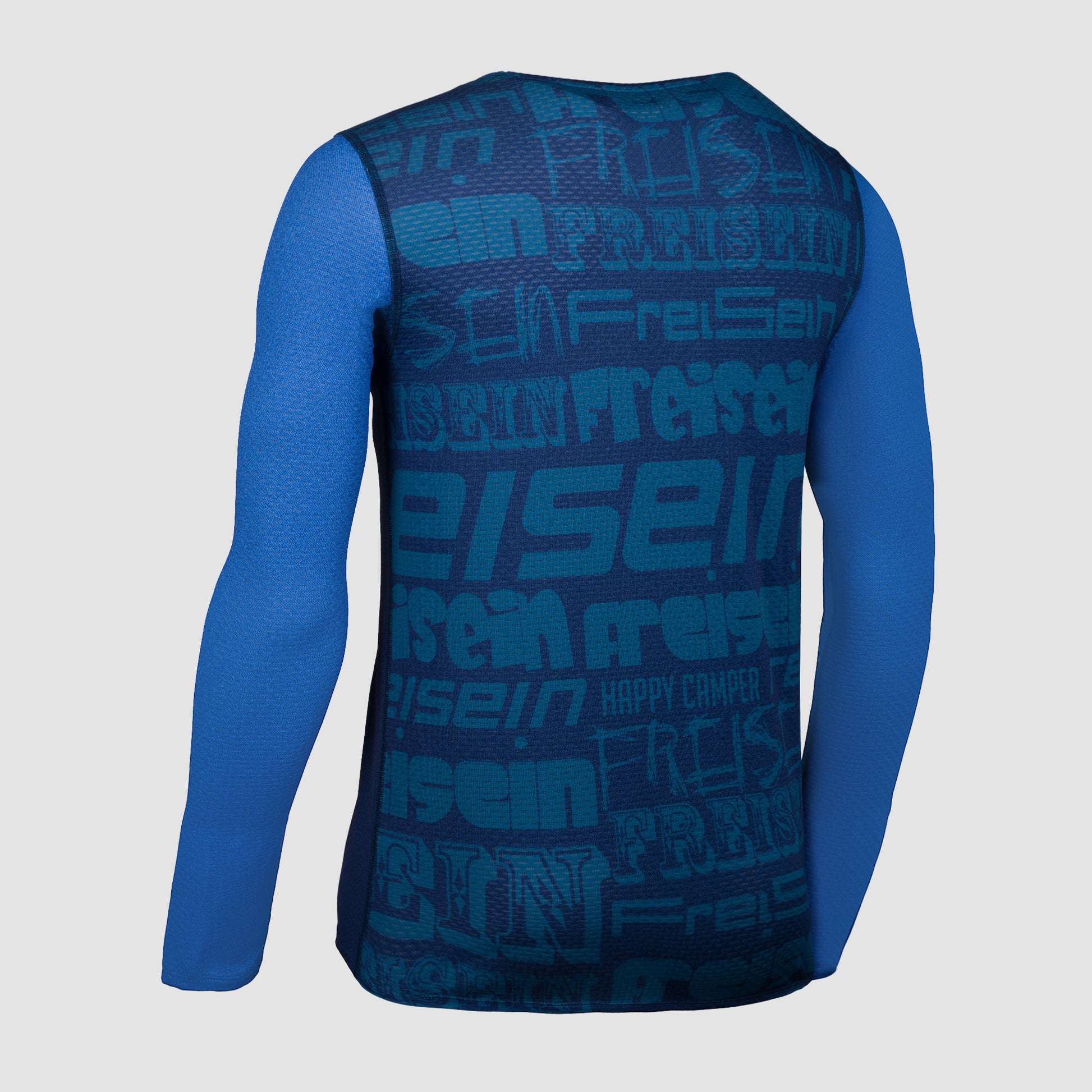 Das leichte Funktionsshirt überzeugt durch seine dezente Optik. In modernen Blautönen gehalten, fügt es sich sportlich und unaufdringlich in jede Sportgarderobe ein. Auf dem Vorderteil ist ein tonales, sportliches Icon platziert. Der Rücken setzt ein klares Statement: Das bekannte FreiSein Allover-Muster zieht sich über die gesamte Rückseite und steht für Bewegung, Freiheit und Individualität – perfekt für sportlich Aktive, die auch optisch ein Zeichen setzen wollen.