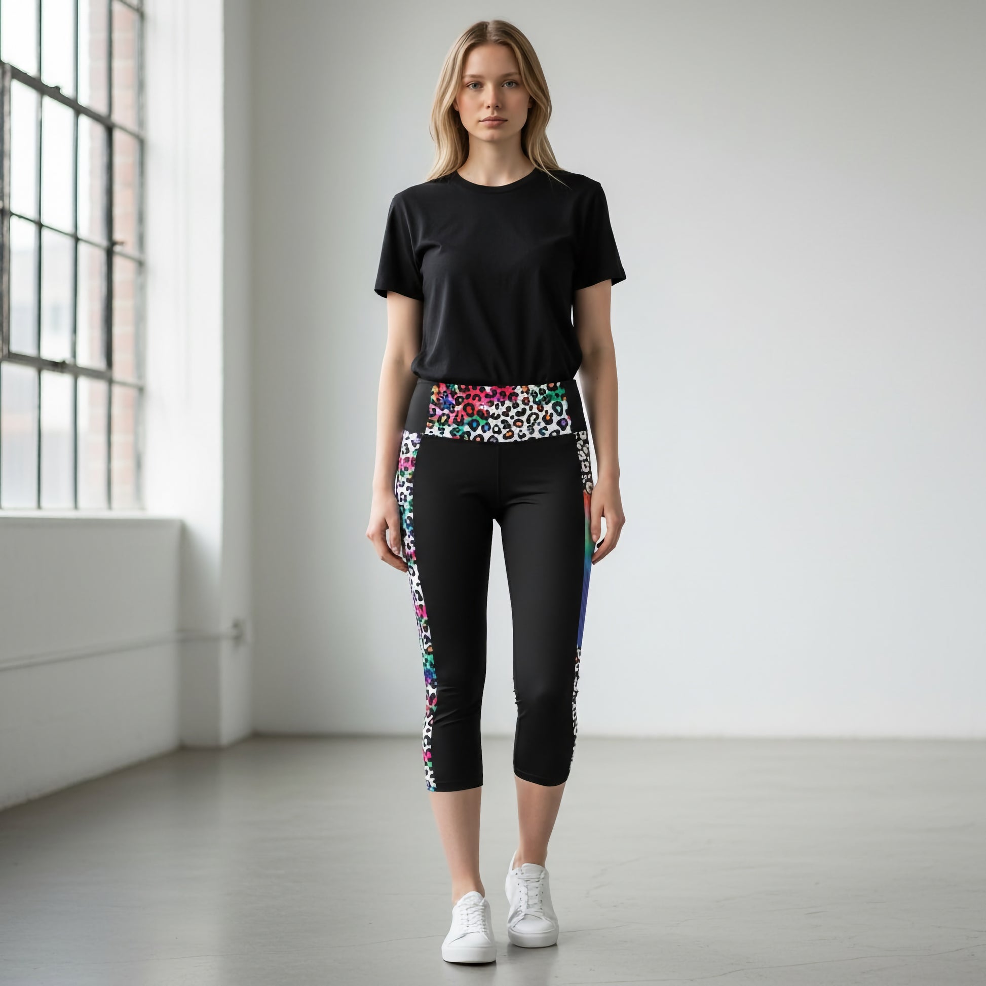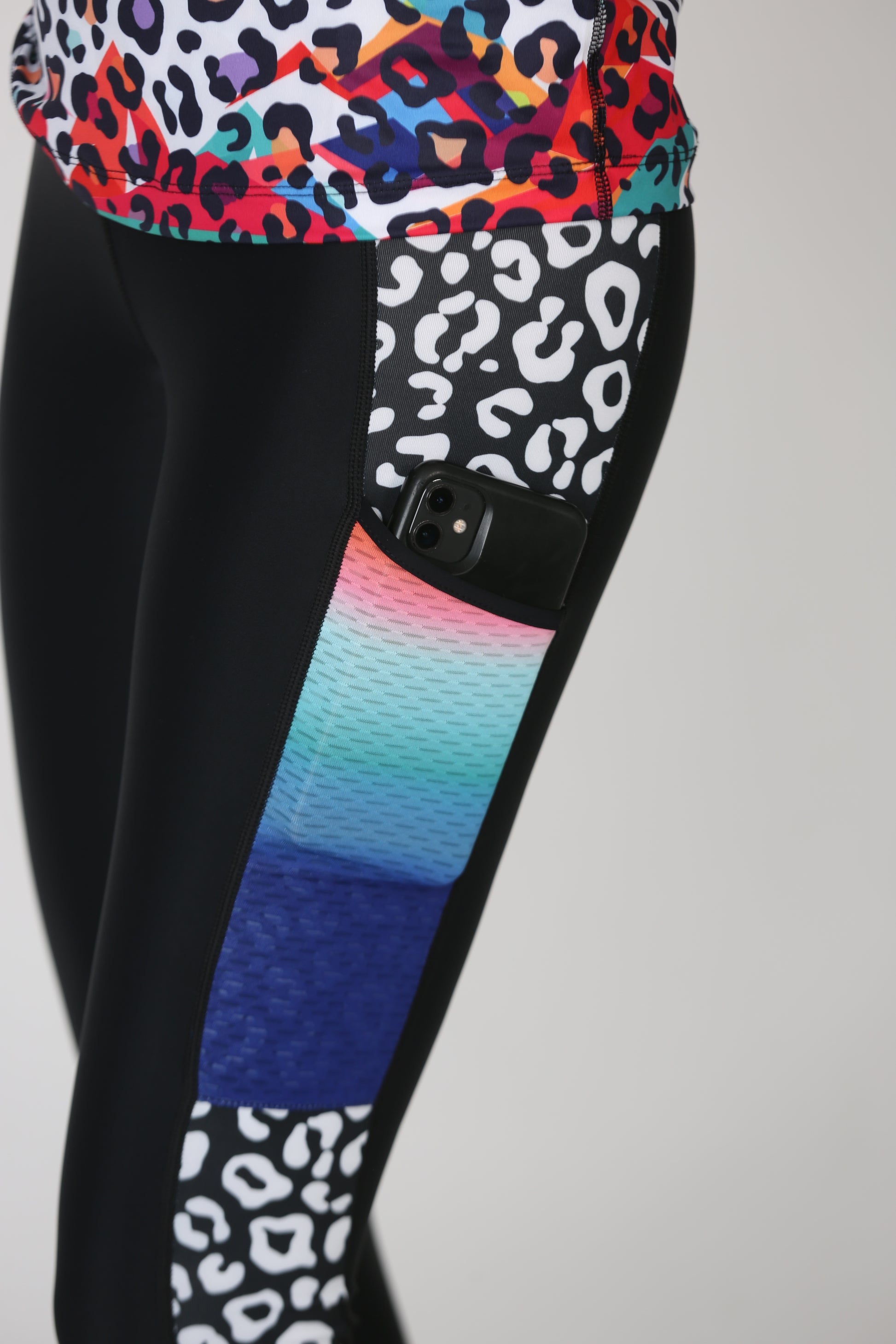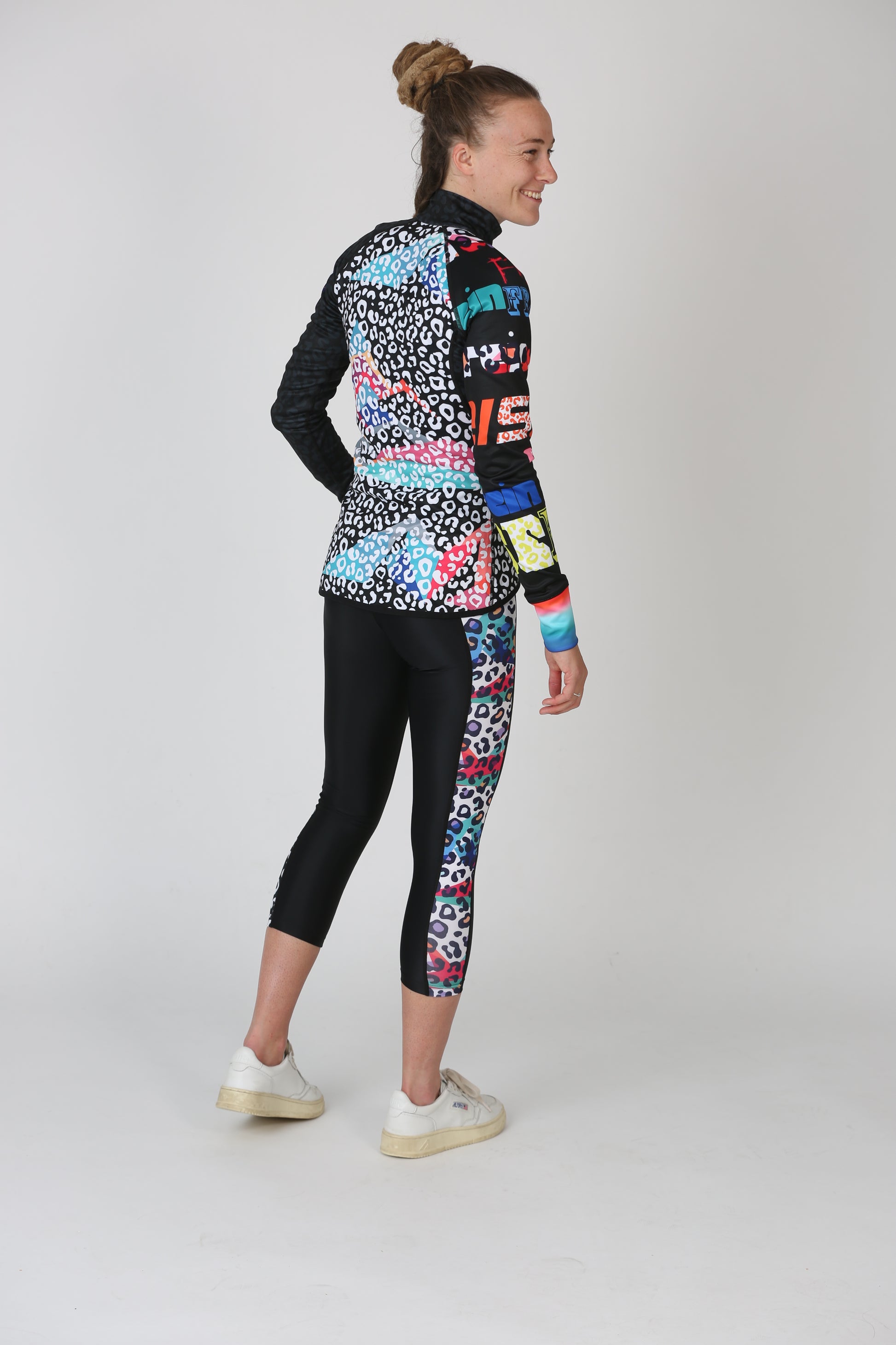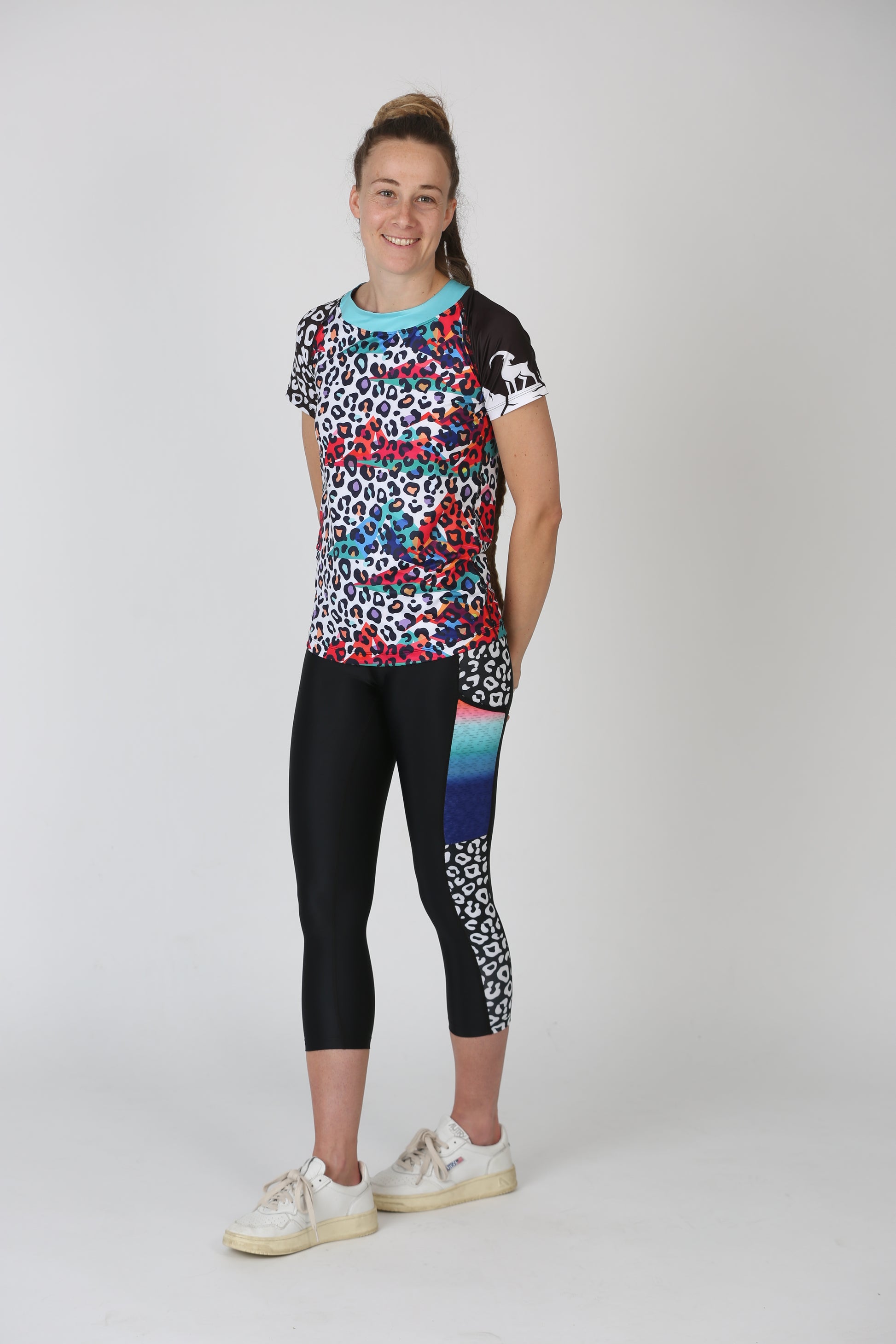 Robuste Berg-Leggings zum Drübertragen mit sportlichem Look. Die schwarze Basis wird durch farbige Leo-Details an den seitlichen Einsätzen und am Bund ergänzt. Besonders stimmig wirkt das Outfit in Kombination mit einem Freisein Shirt oder Top aus der passenden Linie. Dein idealer Begleiter für aktive Tage in den Bergen.