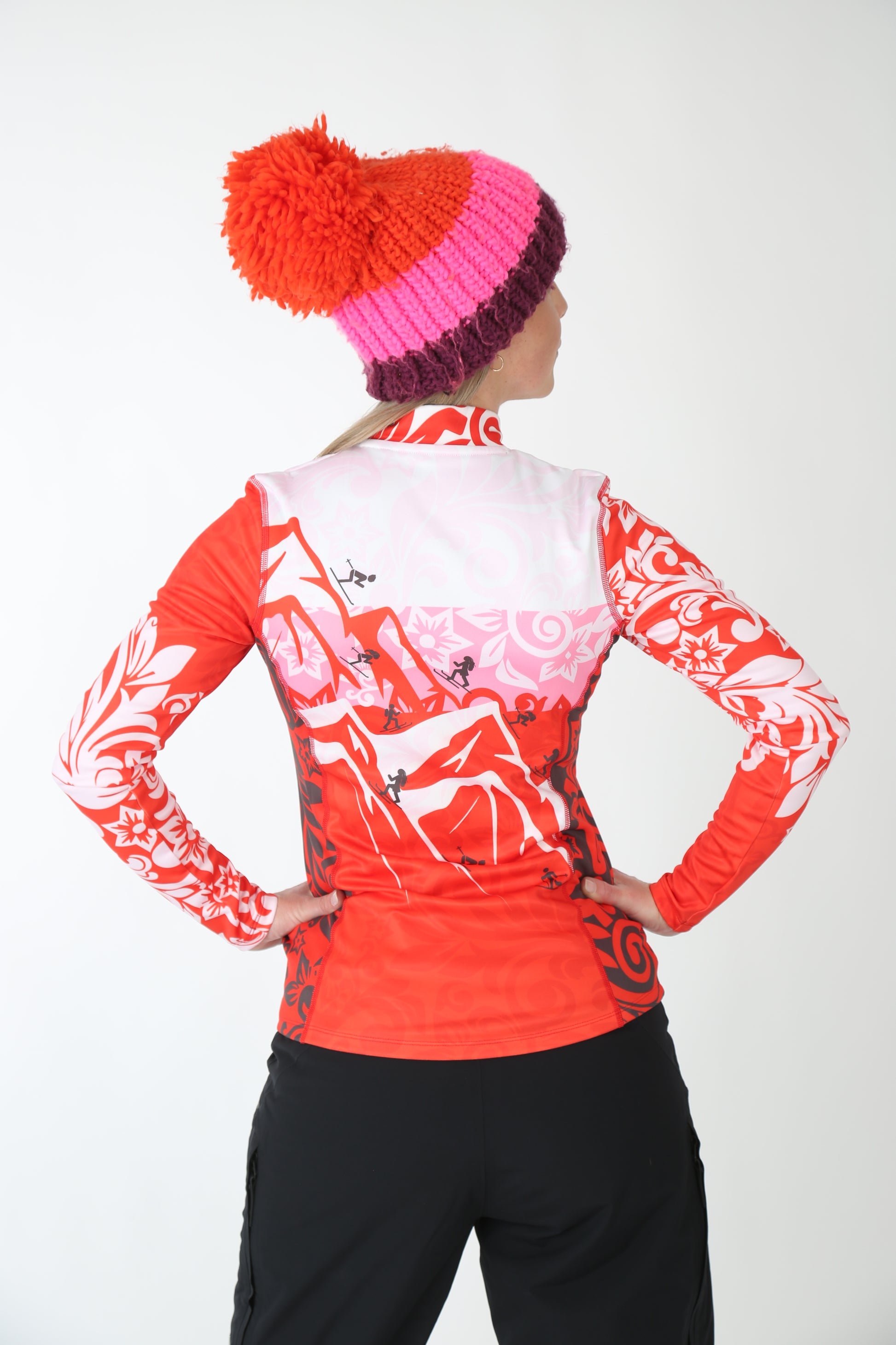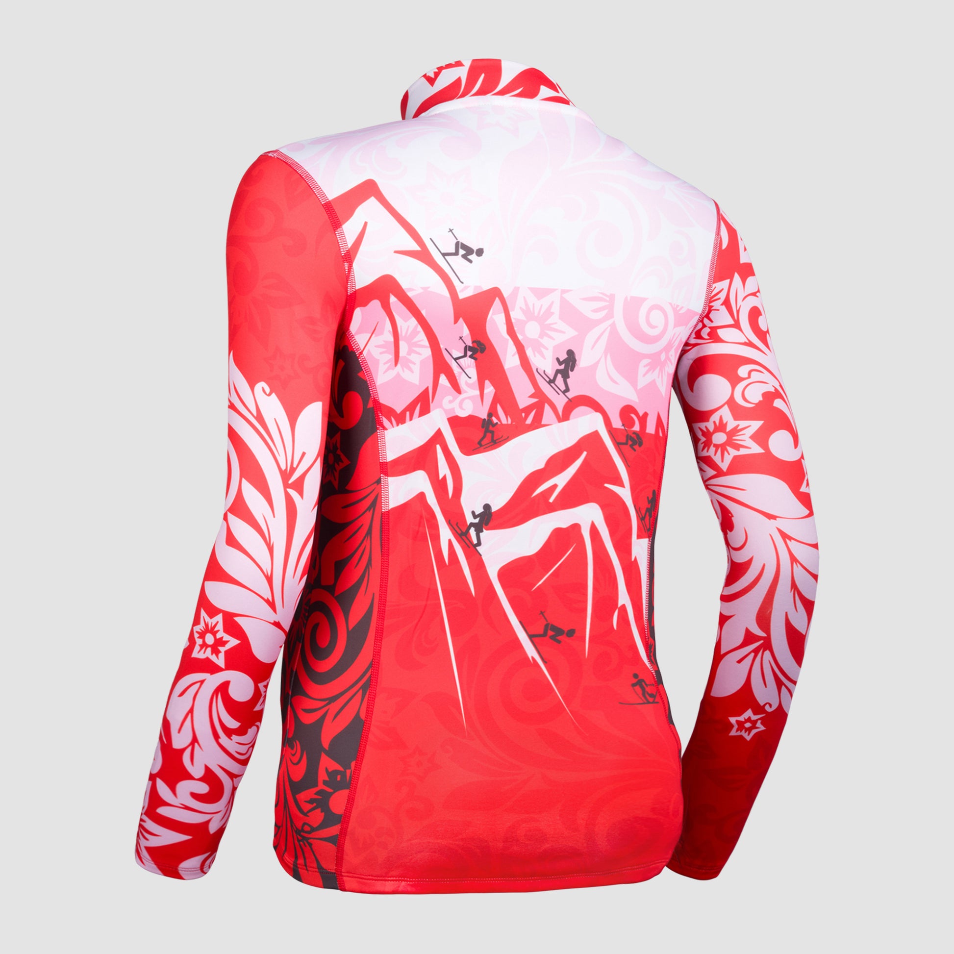 Dieses Skishirt überrascht mit einem ausdrucksstarken Look: Weiße, pinke und rote Blockstreifen treffen in harmonischer Tonalität aufeinander und bringen frischen Wind in Deinen Sportschrank. Ein besonderes Highlight wartet auf der Rückseite: Ein aufwendig gestaltetes Berg-Artwork zieht die Blicke auf sich. Mit Liebe zum Detail illustriert.