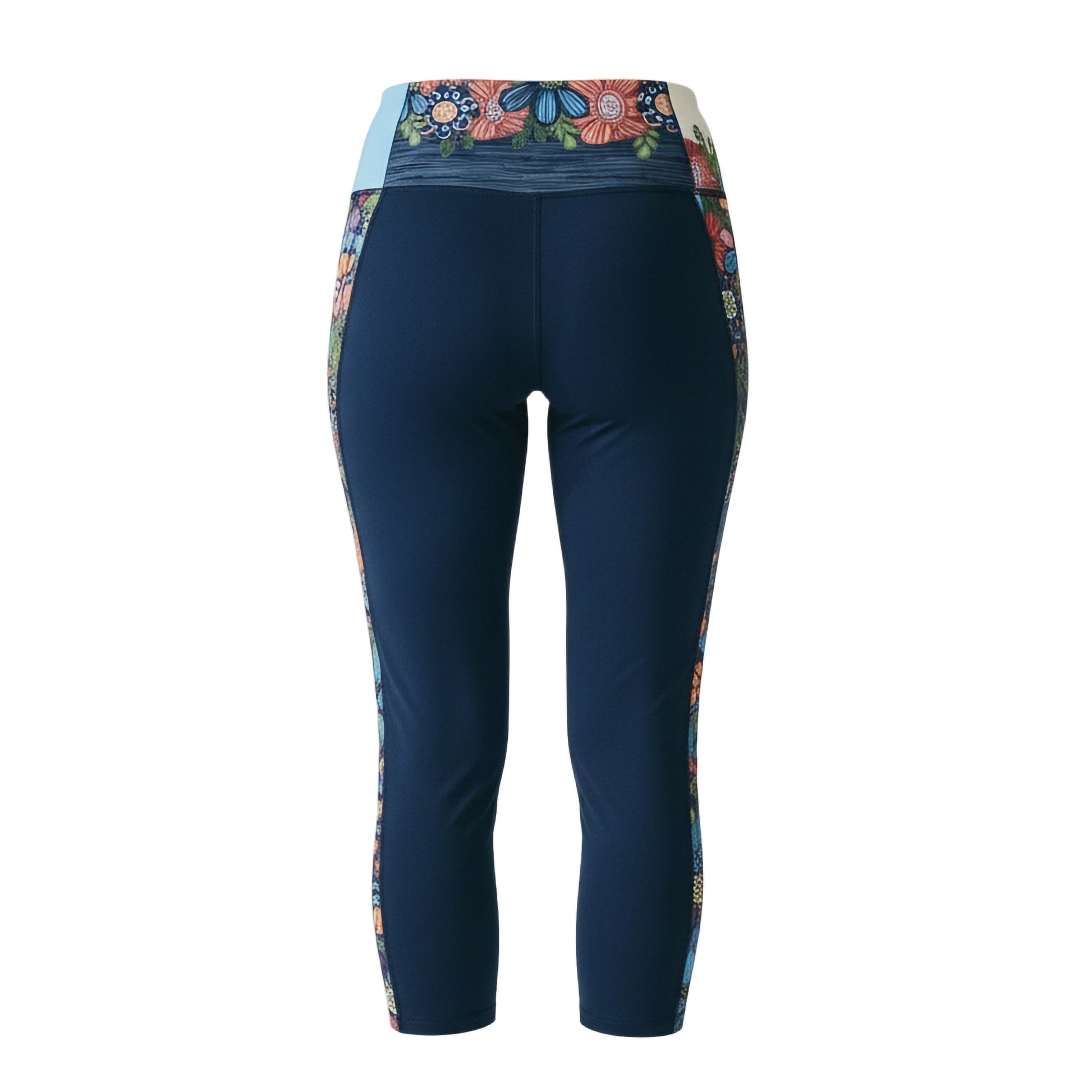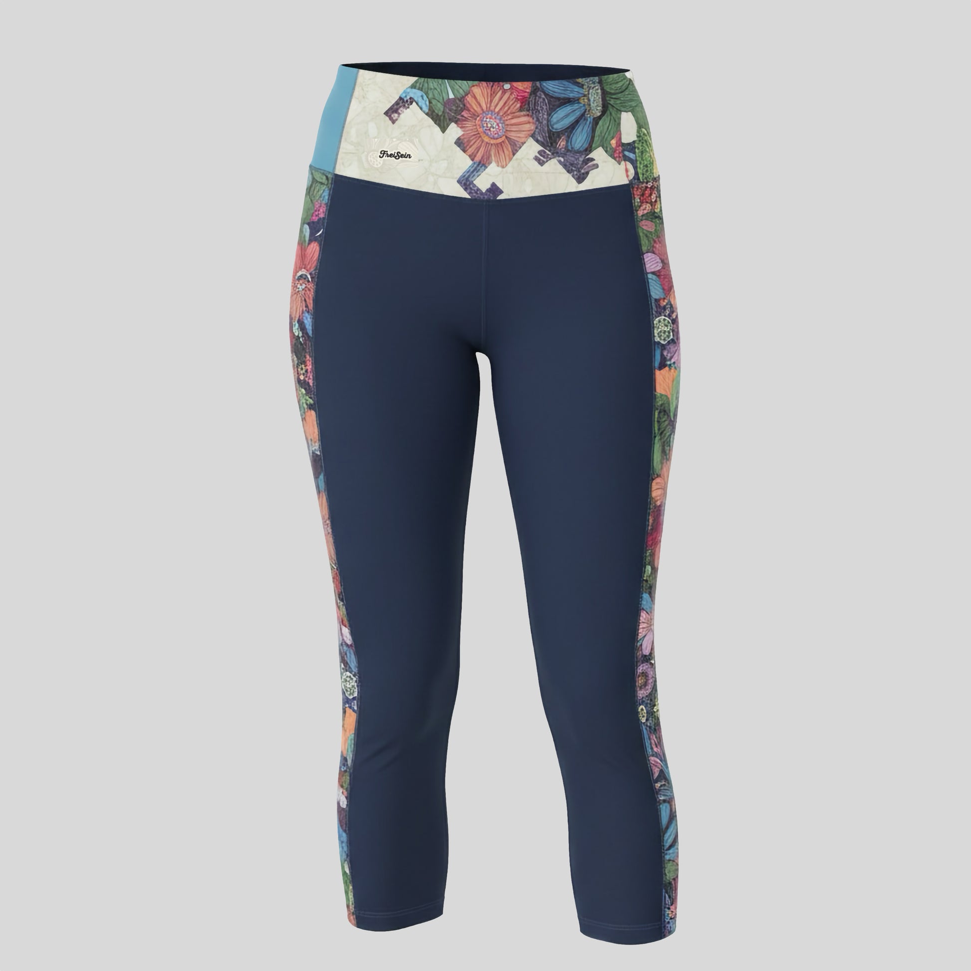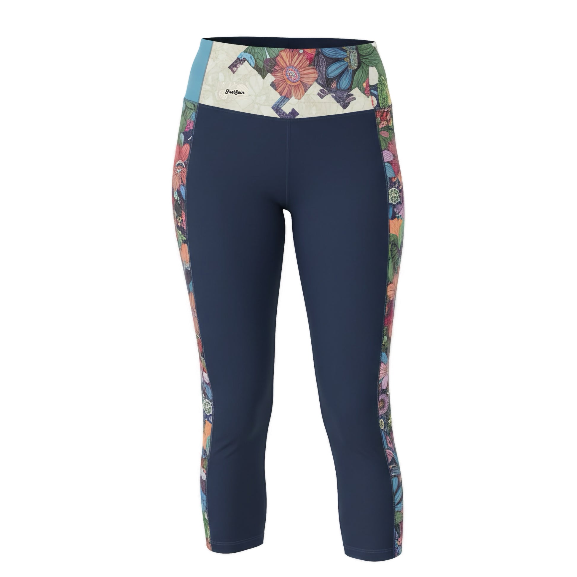 Auf geht’s in die Berge mit der Wander-Leggings von Freisein. „Po“ und Beine in dezentem Blau treffen auf durchgefärbtes Funktionsmaterial, während florale Einsätze an den Seiten für einen besonderen, femininen Akzent sorgen. Ein figurschmeichelnder Look mit sportlichem Charakter.
