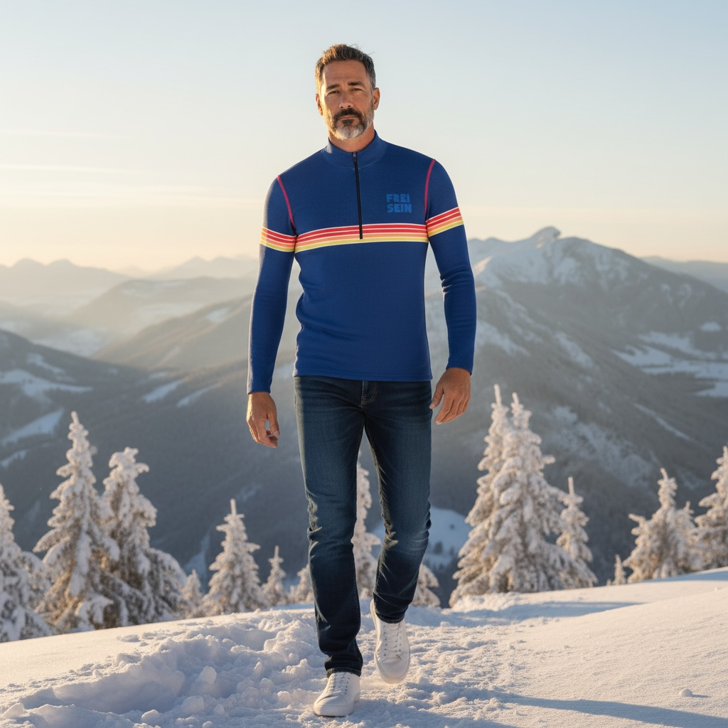 Das Funktionsshirt überzeugt durch eine ausgewogene Kombination aus Zurückhaltung und sportlicher Akzentuierung. Die Grundfarbe in dunklem Blau verleiht dem Shirt eine klassische, dezente Optik während markante Brust- und Armstreifen in Rot-, Orange- und Gelbtönen für dynamische Kontraste sorgen.. Ein besonderes Detail findet sich auf der Rückseite: Ein Ton-in-Ton gehaltenes, sportliches Icon ist dezent eingearbeitet – ein versteckter Hingucker, der erst auf den zweiten Blick ins Auge fällt.