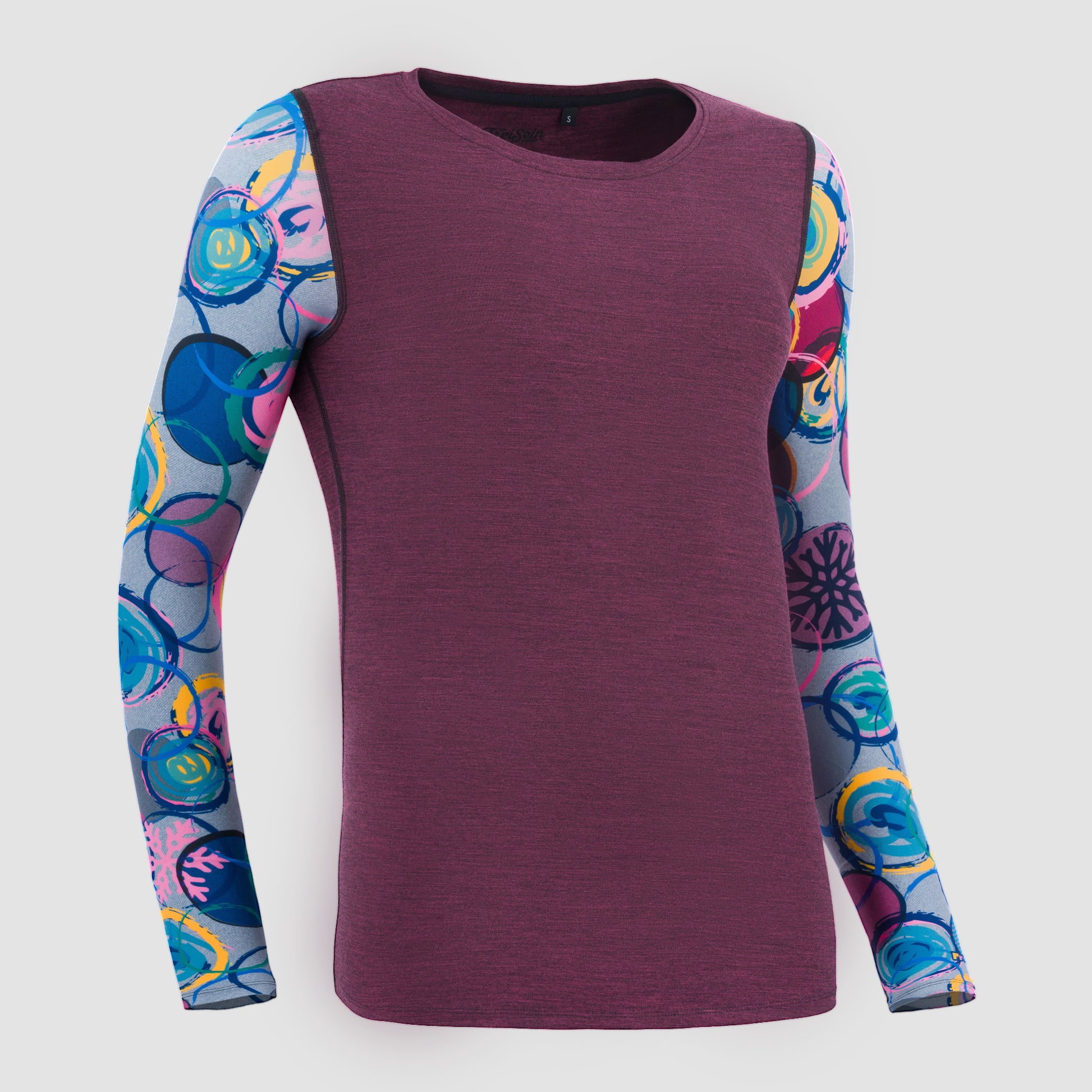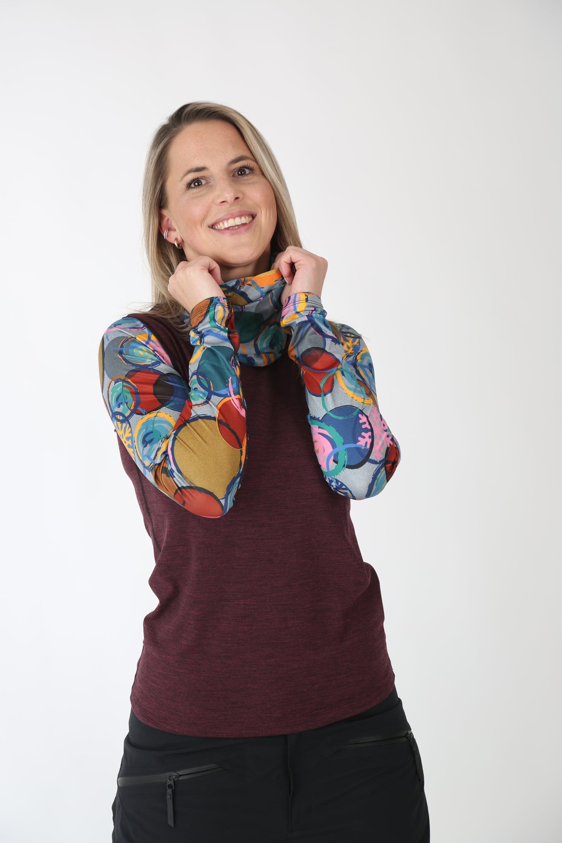"Twisted" heisst ins Deutsche übersetzt verdreht - aber auch verrückt. Und das sind auch unsere Merino Mix Shirts. Der Body in sattem Violett besteht aus einem hochwertigen Merino-Mix. Die Arme aus sublimierter Funktionsware sind der visuelle Hingucker des Shirts: Das dynamische Design spielt mit geometrischen Formen, Farbverläufen und Retro-Anklängen. Die intensiven Farben – von Pink und Senfgelb bis zu Türkis und Petrol – bringen Bewegung ins Outfit und setzen starke Akzente.